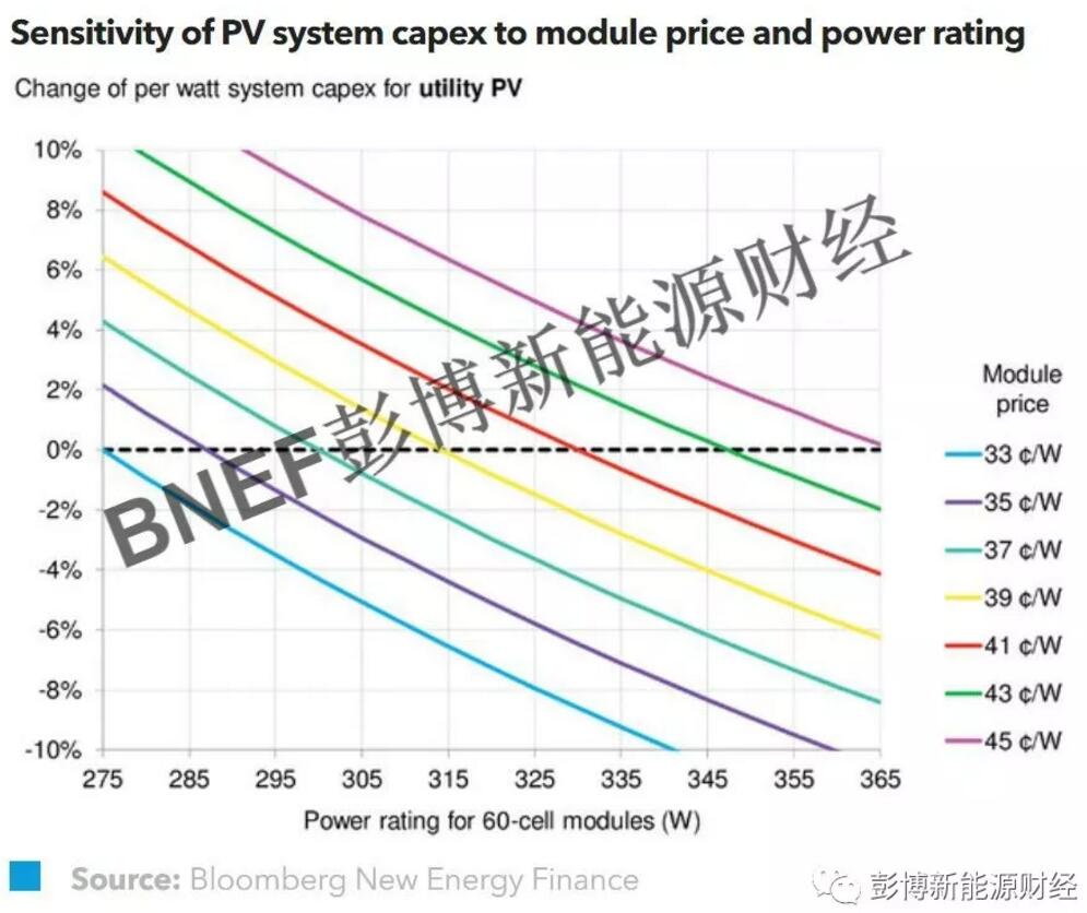 對(duì)于使用雙面組件的光伏項(xiàng)目,其系統(tǒng)規(guī)模應(yīng)該按照包含了背面發(fā)電能力的組件功率來定義。雙面組件更高的功率幫助降低結(jié)構(gòu)性BOS(Balance of System)、EPC(Engineering, Procurement and Construction),以及項(xiàng)目開發(fā)的單瓦成本。相較于采用傳統(tǒng)單面組件的光伏電站,使用P-PERC類型雙面組件可以在幫助系統(tǒng)單瓦成本下降4%的同時(shí),實(shí)現(xiàn)25%毛利的自身銷售。相應(yīng)的,雙面組件將會(huì)在組件制造商及項(xiàng)目開發(fā)商兩端都獲得青睞。