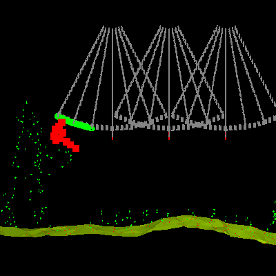 圖3濾波結果(上圖:原始點云,下圖:數學形態學濾波得到的地面點)