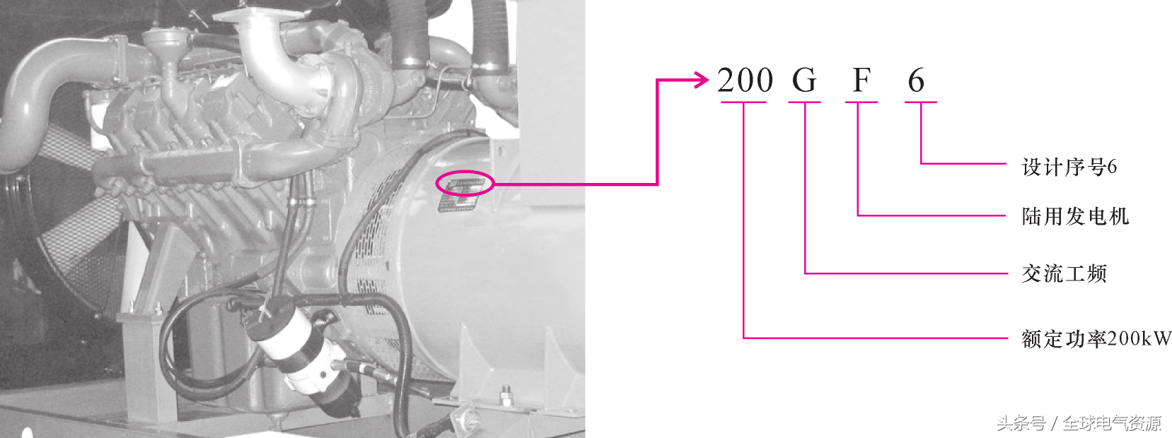 例如,圖7所示典型的發電機的銘牌顯示表示其型號為" 200GF6",能夠參照上述命名方法來理解該型號顯示的意思