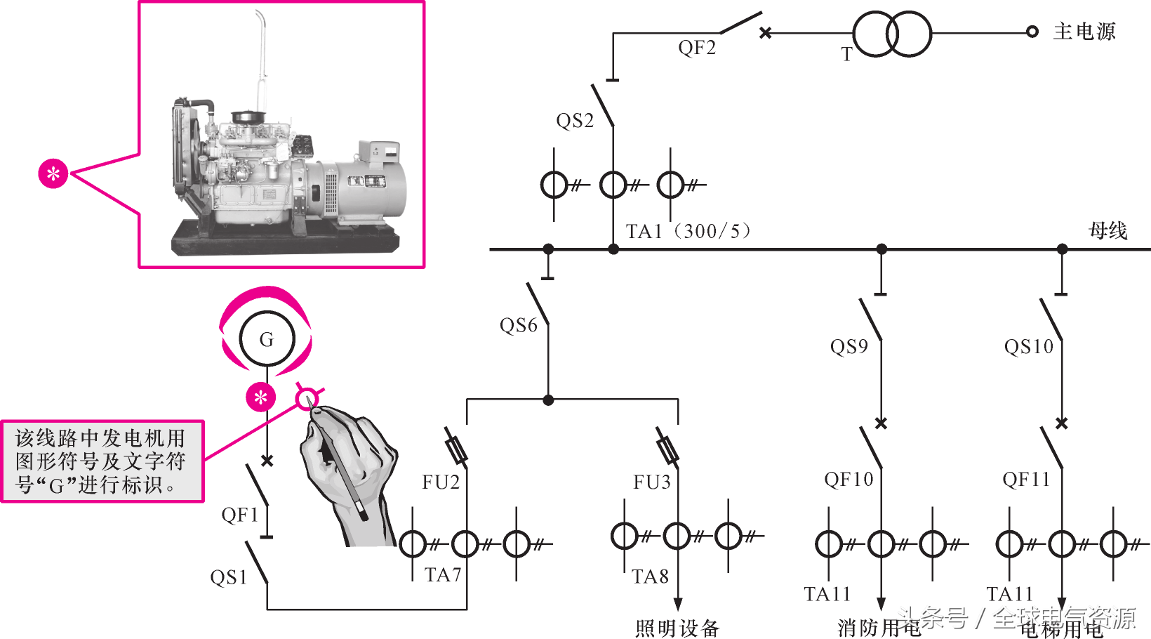 由此可知,發電機的符號與電動機的符號相似,一般用“g”字母表示。 g是發電機,GD是DC發電機,GA是交流發電機(異步發電機),GS是同步發電機,GH是永磁發電機。 通過這些不同的字母表記號,可以快速識別線路中使用的發電機的類型。