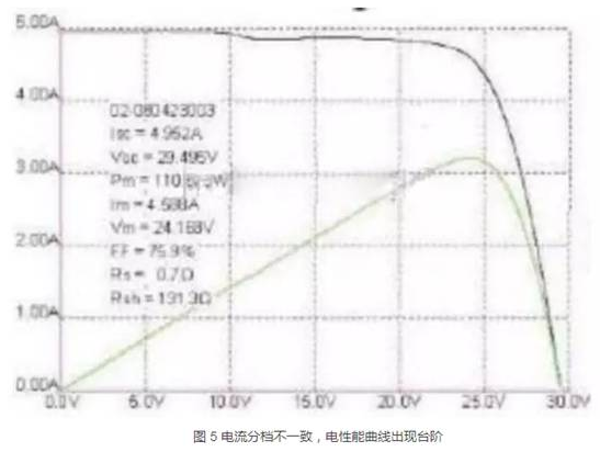 組件中電池片功率、電流分檔不一致,組件實際輸出功率與組件理論功率差異過大。分檔不一致會造成組件電性能測試曲線異常,引起熱斑效應,長時間使用會大幅降低組件功率。