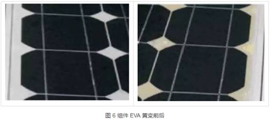 層壓溫度過高,層壓時間過長,組件經過高溫后,EVA黃變老化系數增大,長時間戶外使用,會使EVA及背板等輔材發生黃變,最終導致組件發電功率大幅度下降。